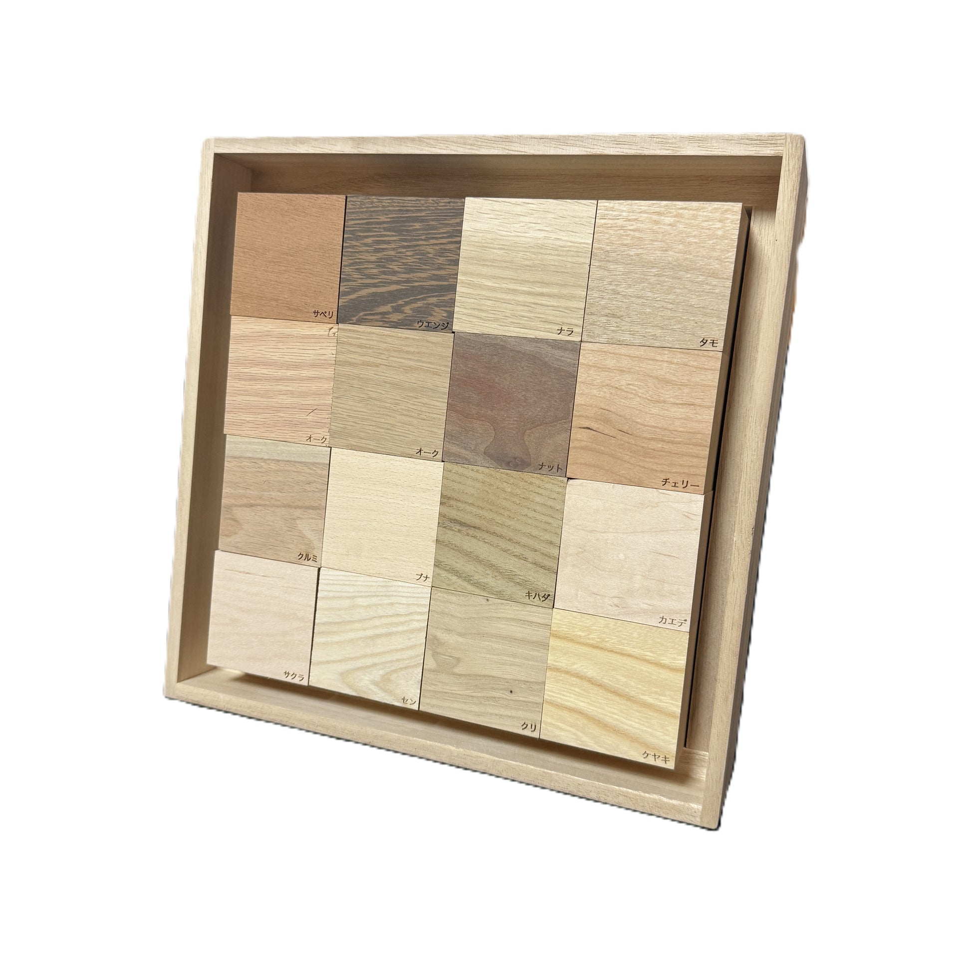 ものづくりブロック【世界の16種セット】(樹種名入り)桐箱セット
