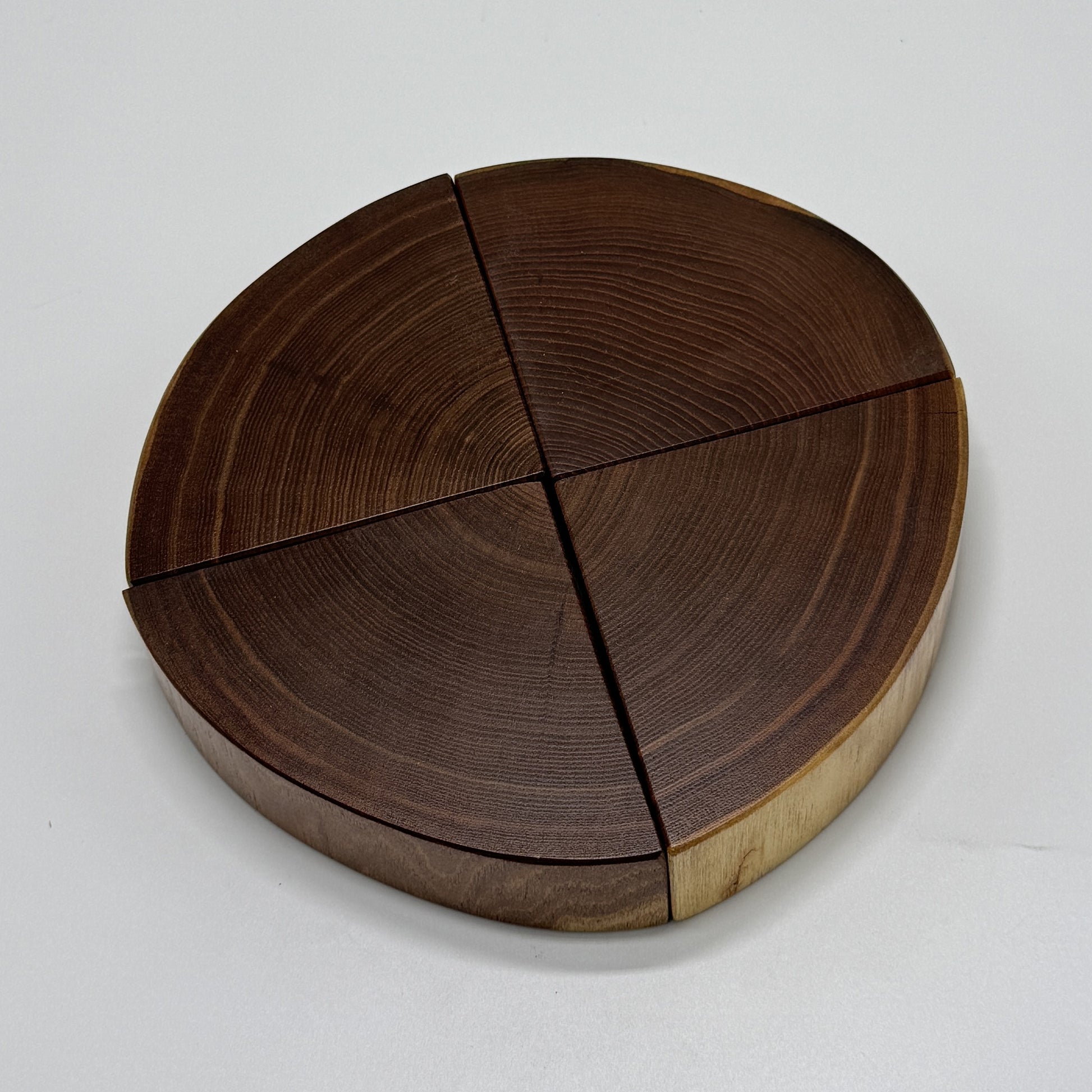自然が描く年輪の美しさを、円を四等分した三角形に切り出した無垢の木材「トライアングルウッド」。